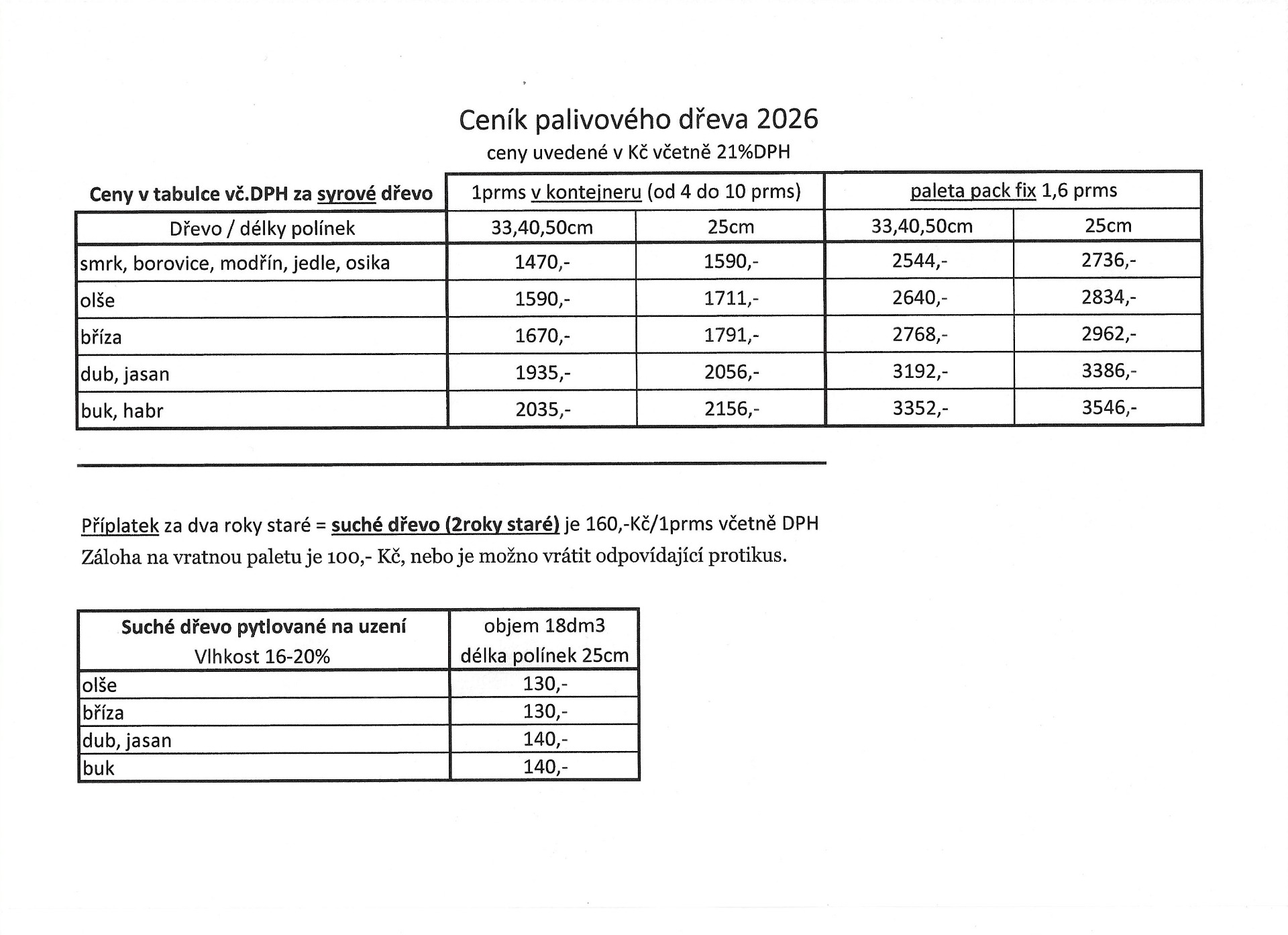 PALIVOVÉ DŘEVO - CENÍK
